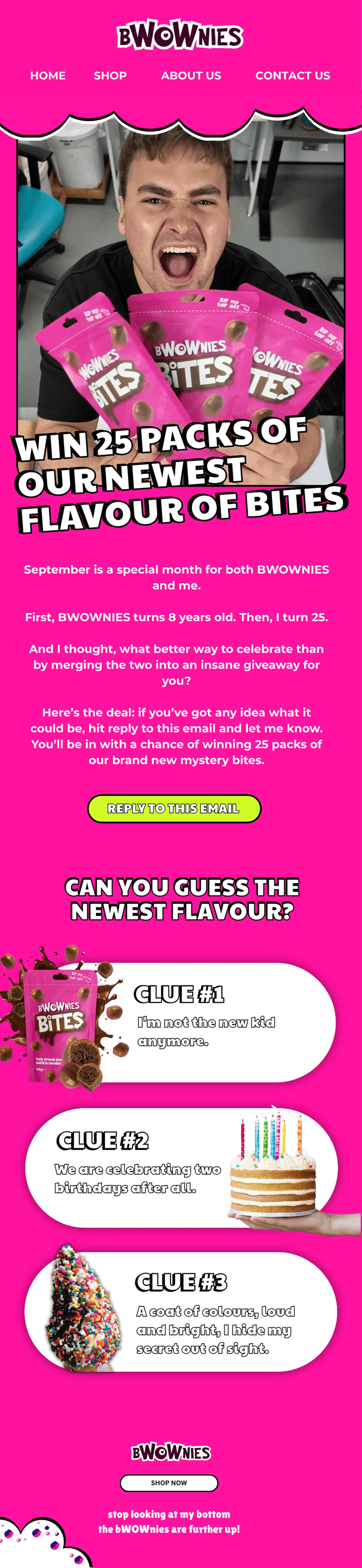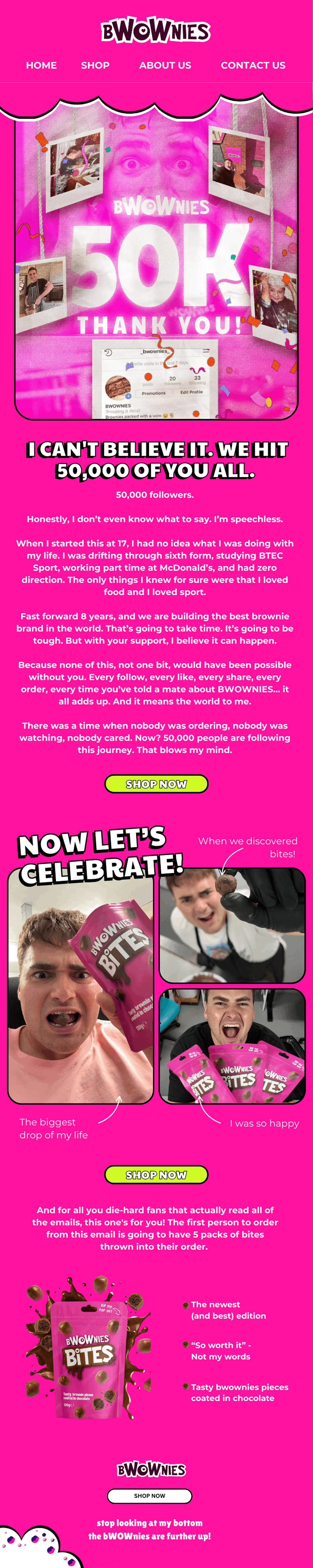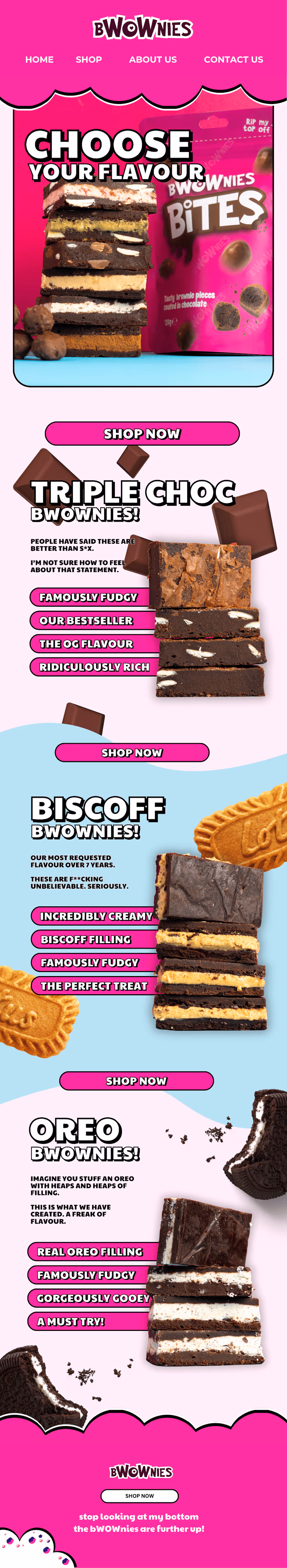 Bwownies came to us with no paid traffic, a declining business, and an unused email list of just 10k subscribers.We transformed email into their growth engine, driving a 200% year-over-year increase in email revenue and making email responsible for over 50% of total revenue.