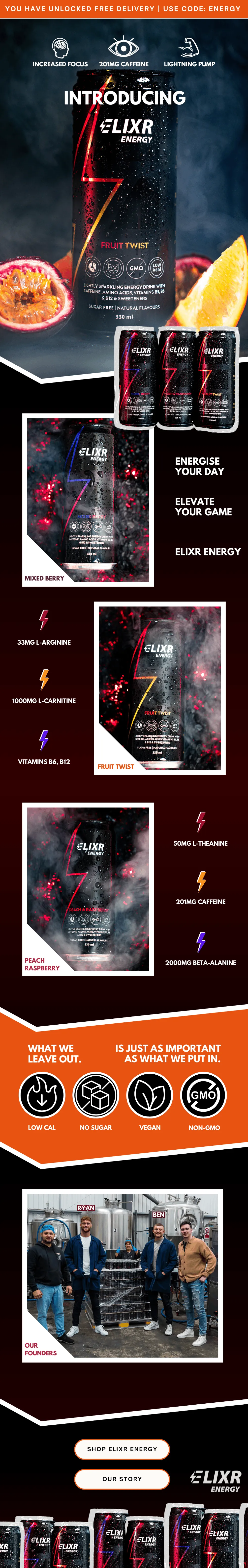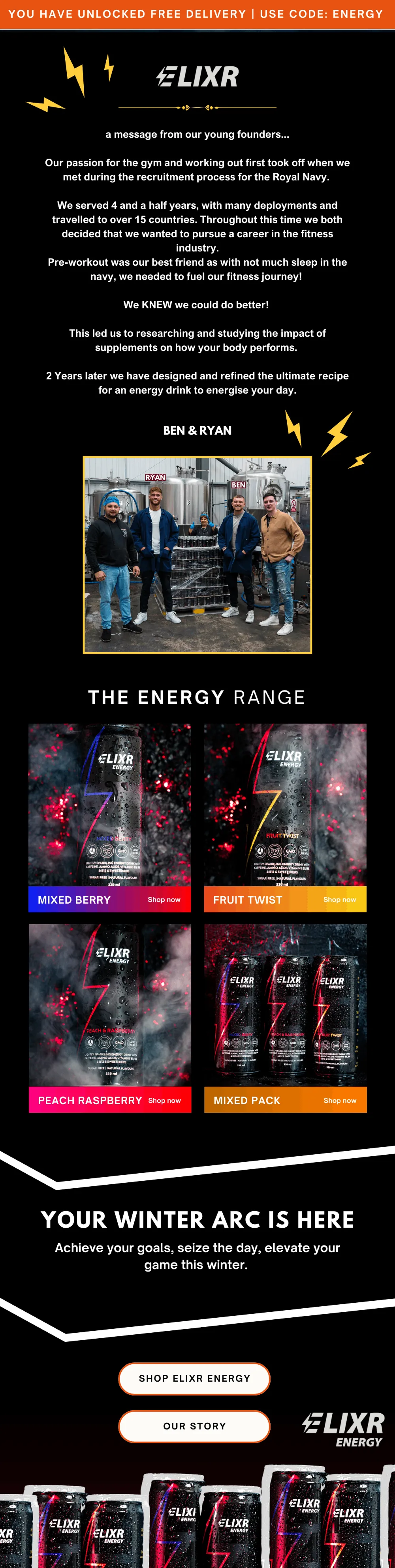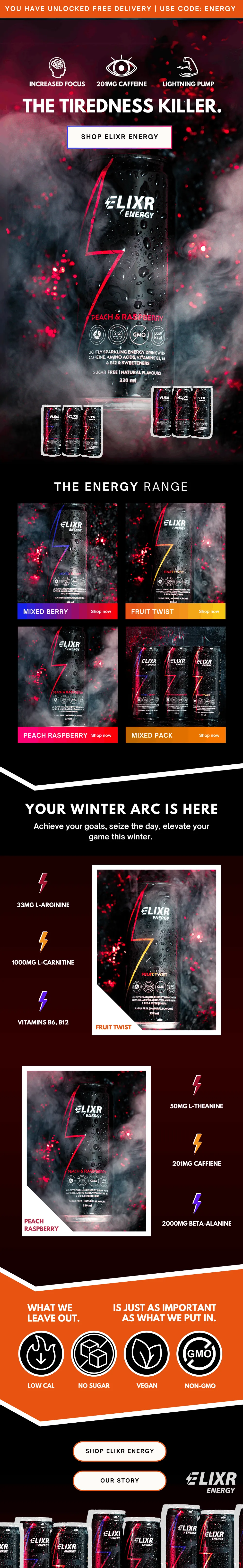 ELIXR Energy is another FMCG brand that relies on recurring purchases. The brand had a super small email list and only needed the infrastructure built to facilitate scale. We built their back-end automations.