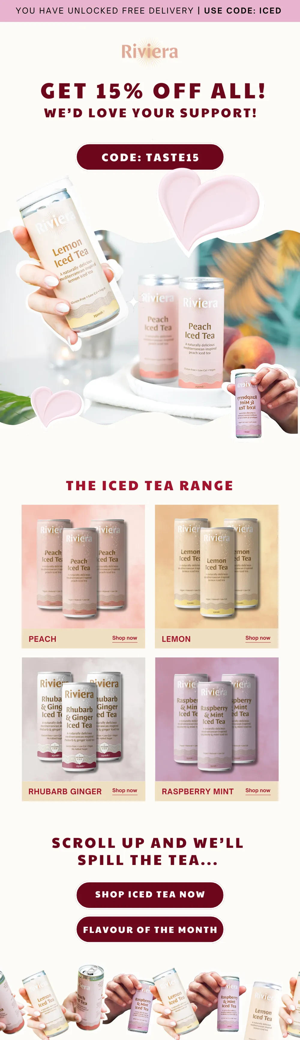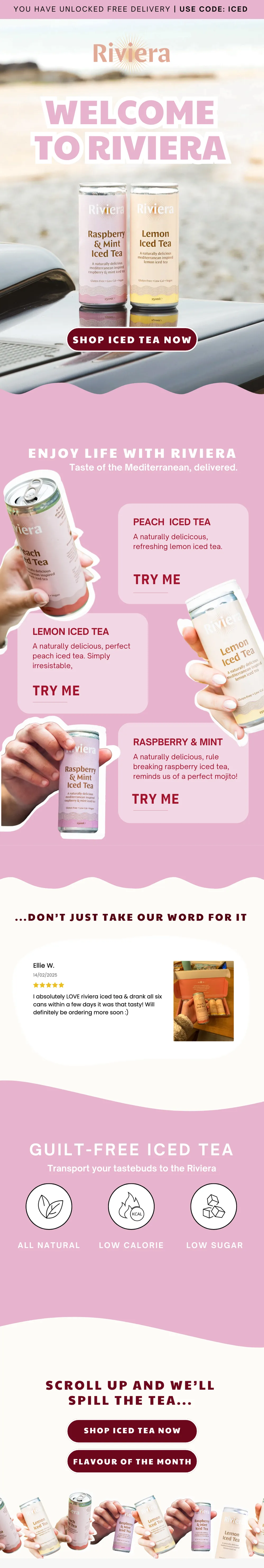 Riviera is a premium iced tea brand that needs to consistently sell stock. They were already spending on Meta advertising but had nothing set up to increase lifetime value or incentivise more purchases.