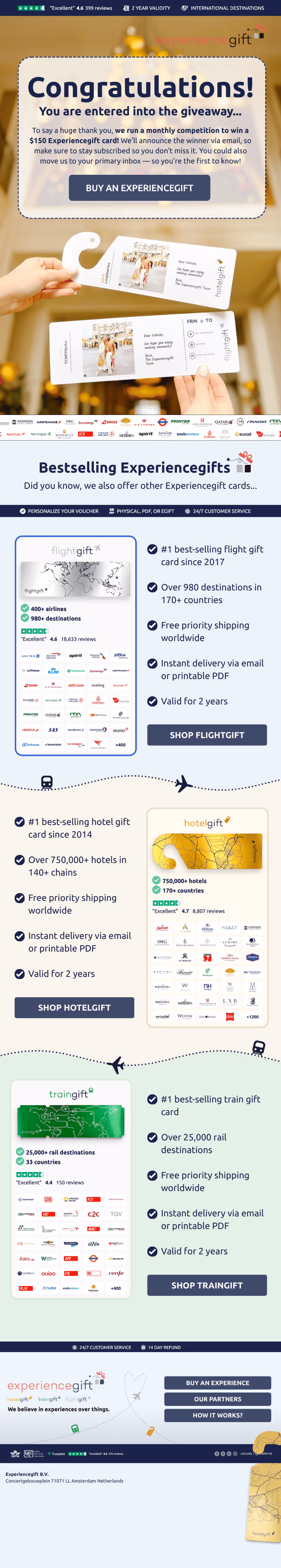 Experiencegift are a worldwide gift card company operating at multiple 8-figure revenues annually.They were spending millions on meta advertising, but their email channel was completely dormant. We built them bespoke automations that in their first 60 days have generated $50,779 in revenue. We also built them a clear campaign strategy pulling data from their advertising channels, engagement, order volume and LTV. Sending campaigns immediately generated the business $97,647 in revenue in the first 60 days.